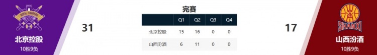 北控31-17校服山西。