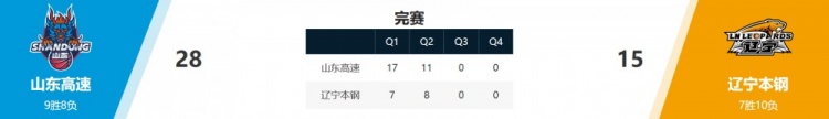 山东28-15打败辽宁。