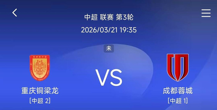 2026赛季中超第三轮的一场焦点战——成渝德比,将于3月21日晚打响,重庆铜梁龙在龙兴主场迎战成齐蓉城。