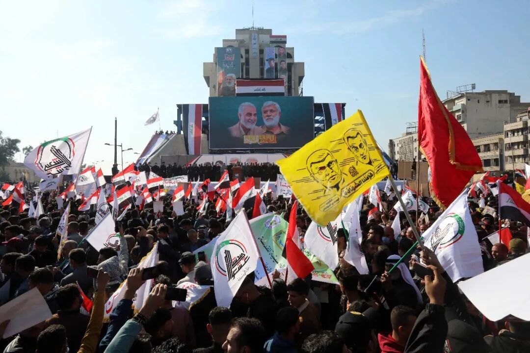 2021年1月3日,在伊拉克巴格达,东谈主们过问苏莱曼尼和穆汉迪斯遇袭身一火一周年吊唁算作。