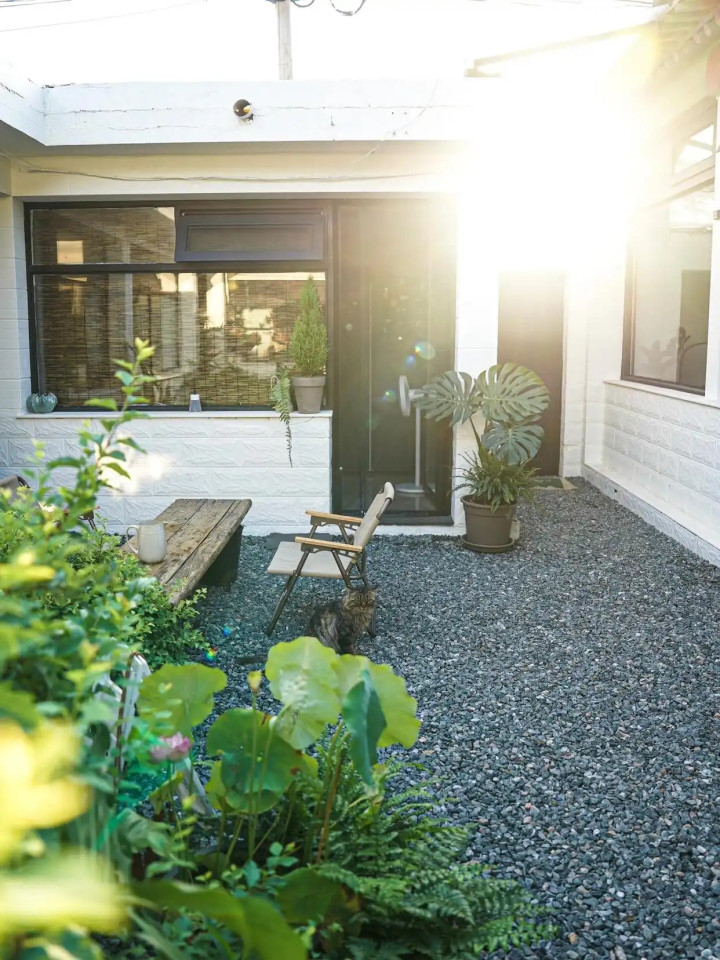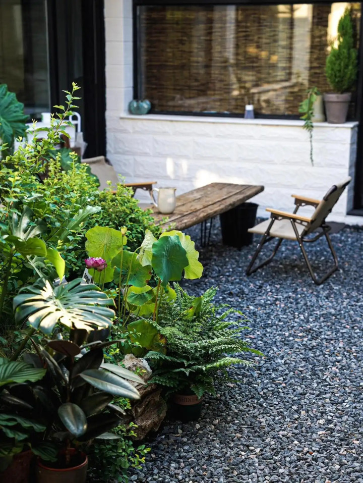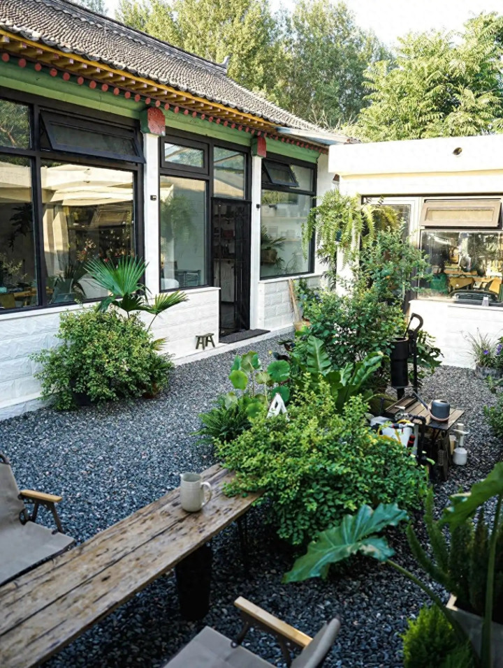 说出来你都不信,蓝本的院子果真是庸碌得不行:满地的瓷砖、反光得夺主义玻璃砖、夏天踩上去又硬又冷的石板路,少量儿莫得像“院子该有的舒心感”。