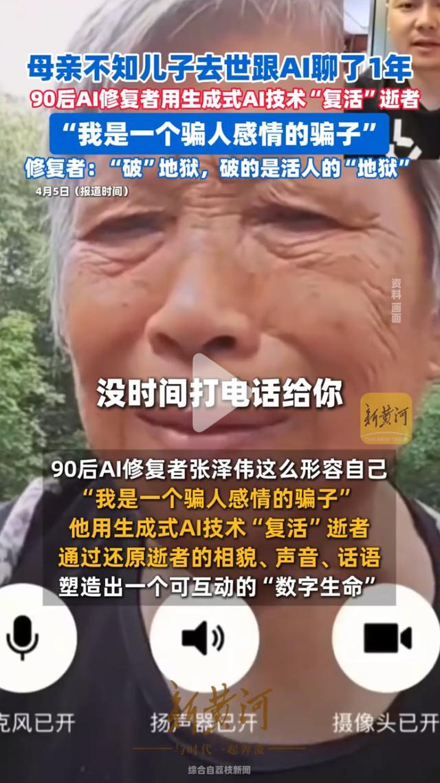 AI还原死者相配到位,从样貌到动态,从语言的习气、想维方式以至到方言齐模拟得相配传神,这也让老母亲完全莫得看出来孩子是编造的。